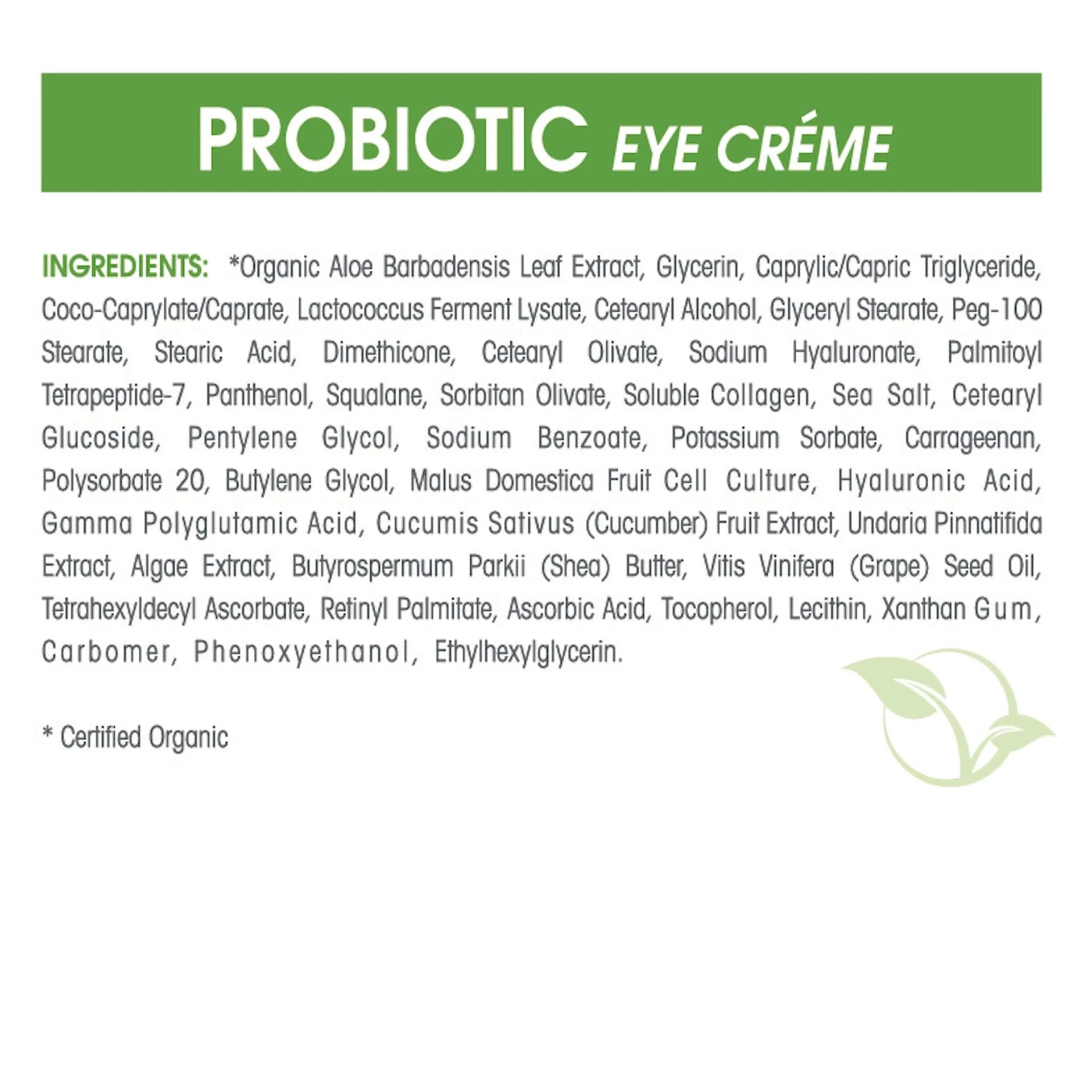 Lightweight, silky eye cream delivers intense hydration and helps repair multiple signs of aging. Probiotic Extracts, Apple Stem Cells and Peptides work together to help plump and firm skin while diminishing the appearance of fine lines and wrinkles, dark circles, puffiness and bags. Humectant Hyaluronic Acid prevents water loss to keep skin hydrated. Antioxidant Vitamins A, C and E help protect the delicate eye area while accelerating cell renewal and boosting collagen production. Leaves the eye area soothed, smooth and dewy.