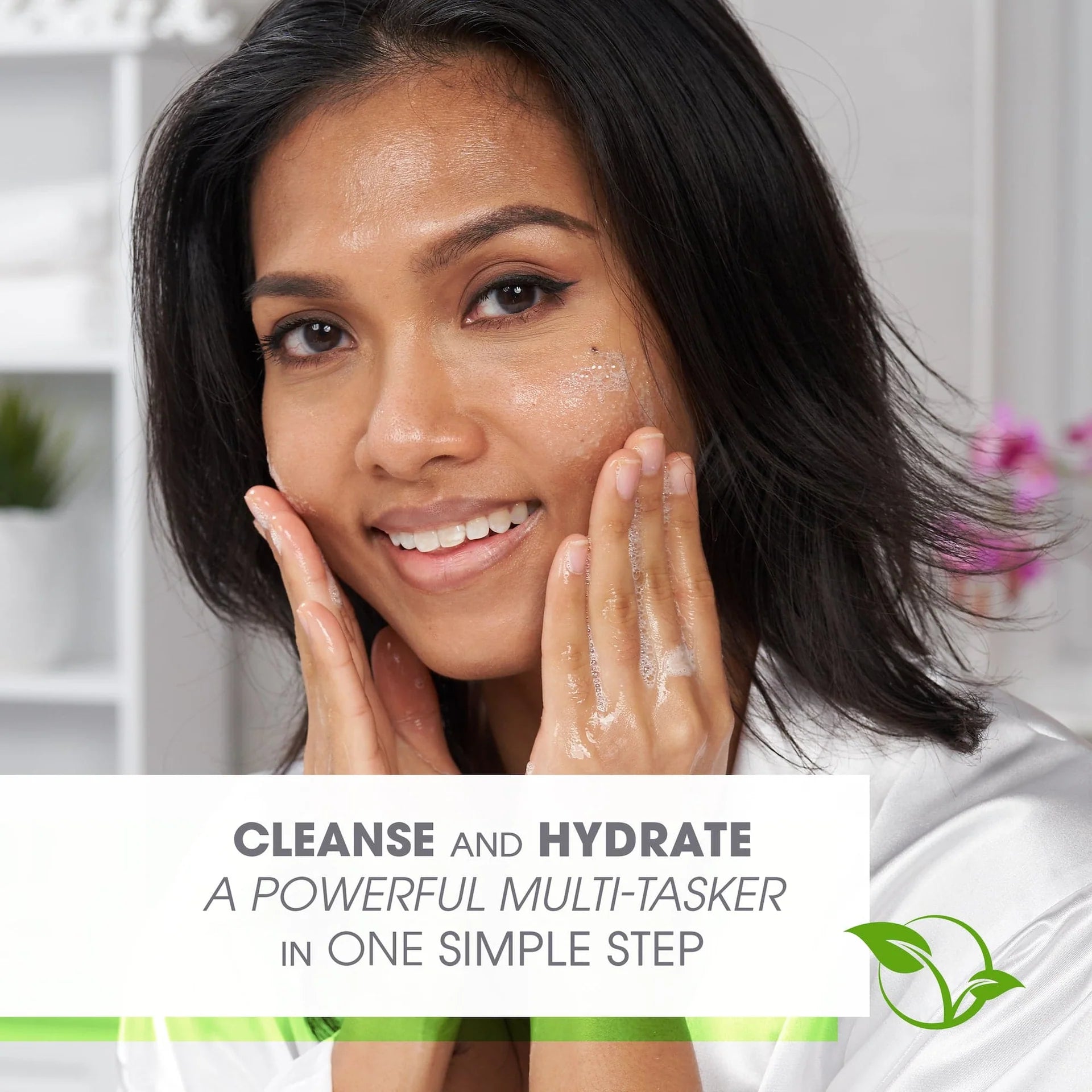It's a powerful multi-tasker! In one simple step, this hydrating cleanser thoroughly cleanses skin while organic aloe vera, Vitamin E and many active anti-aging ingredients nourish your skin. No wonder it's a best seller!